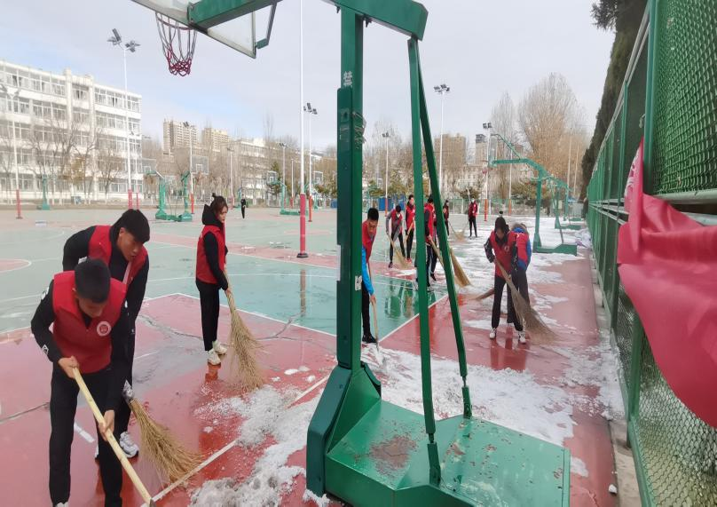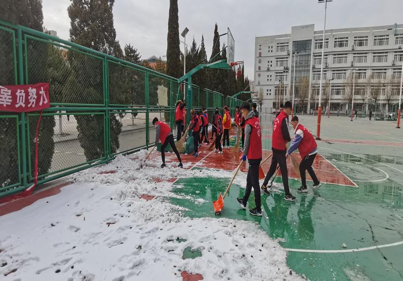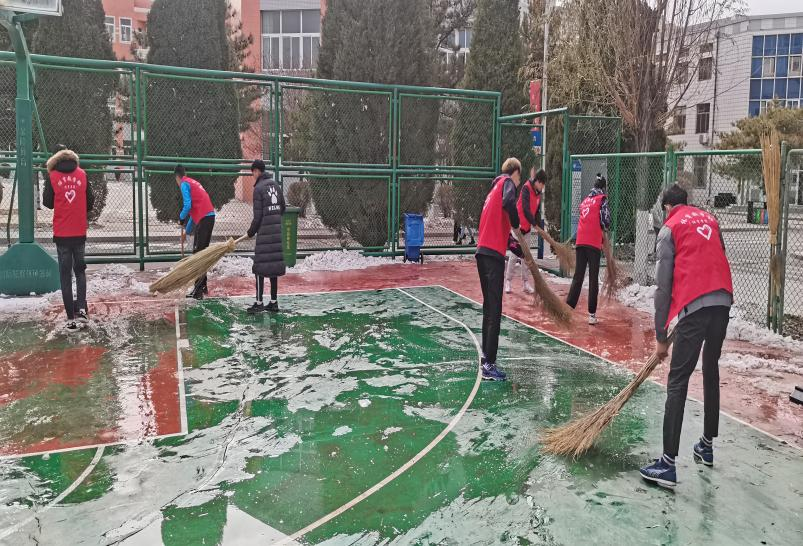 2021年11月9日,为保证师生上课安全,伟德国际1946官方网组织学生会全体成员对室外篮球场地进行除雪。清扫当中,为了推进工作进度,以小组为单位,分片划区、分工合作用铁锹铲、扫帚扫,篮球场地很快清扫完成,切实消除了由于下雪结冰带来的安全隐患。