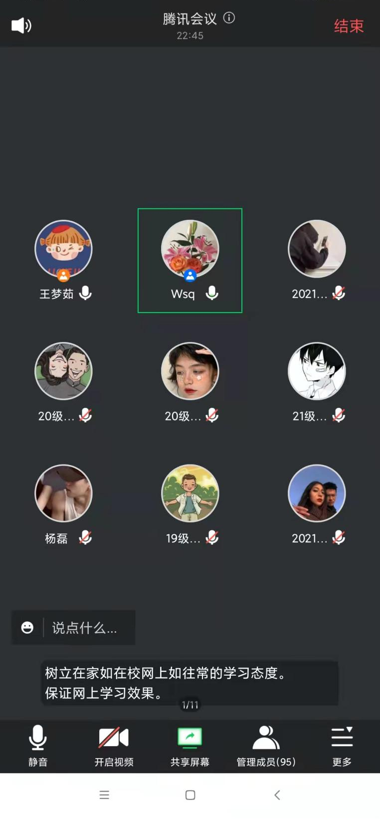 会议开始,党总支副书记武淑琴传达了学校《关于做好疫情防控期间学风建设工作的通知》文件内容,贯彻落实自治区教育厅、包头市政府及学校党委对新冠肺炎疫情防控工作部署,切实组织好延期返校期间的网上课堂学风建设,落实“全员育人、全程育人、全方位育人”教育理念,营造良好的线上学习环境,共建学院良好学风。最后,叮嘱全体同学要听从学校统一安排,学校将密切关注疫情发展形势,按照属地疫情防控要求及时做出新的开学返校安排,并及时进行通知。还让同学们做好自我防护,适时地进行体育锻炼,抓紧时光努力学习,精进学业,紧跟教学计划,按时完成相应的学习内容。