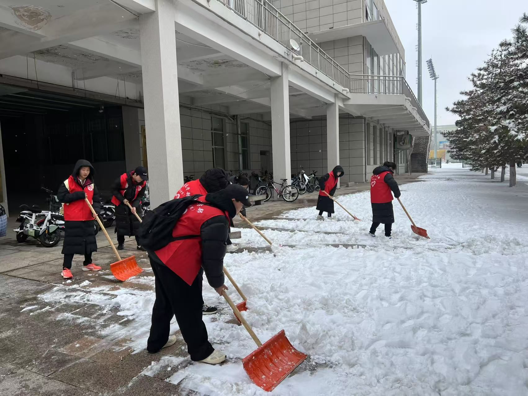 活动当天,志愿者们准时集合,领取了扫雪工具后迅速投入工作。大家分工明确,有的负责铲雪,有的负责清理路面。经过两个多小时的努力,对体育馆周边的积雪进行清除,为师生们的出行提供了便利。