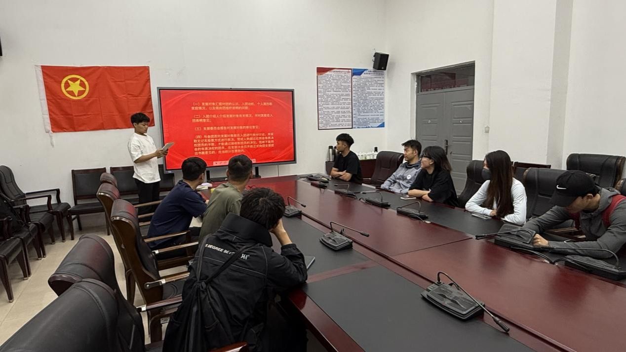 会议伊始,全体起立,奏唱团歌,激昂的旋律瞬间点燃现场气氛,也拉开了本次大会的序幕。随后,拟发展团员依次上台,向团支部大会汇报自己对共青团的认识、入团动机、个人经历以及在思想、学习和社会实践等方面的表现,表达了对共青团组织的向往与忠诚,展现出积极向团组织靠拢的决心和态度。