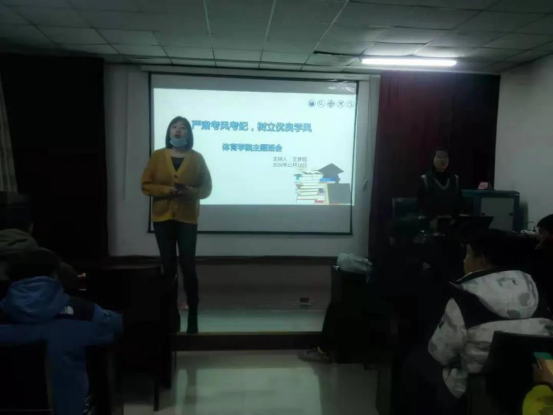 诚信是公平考试的前提和必要条件,为进一步严肃体育教育专业考风考纪,营造诚实、诚信的学习氛围,促进优良学风建设。2020年12月18日,在体育馆二楼多媒体教室我系开展了严肃考风考纪,树立优良学风主题教育会议。参加本次会议的有体育学院副院长苗凯、体育教育系主任王丰、团总支书记闫智惠、专职辅导员王梦茹及全体学生,会议由学工办主任赵鑫主持。
