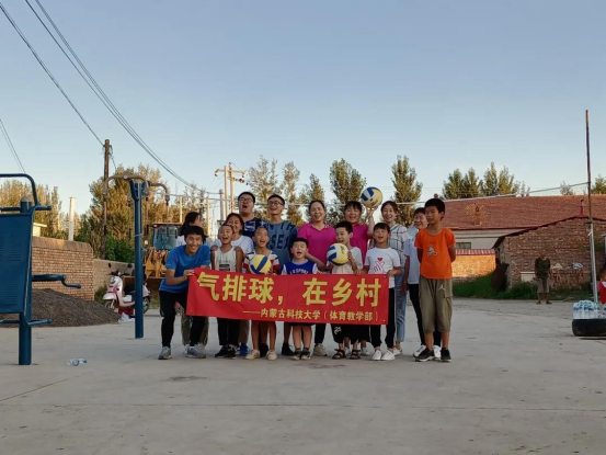2020年8月5日,2018级体育教育专业学生朱海存到赤峰市翁牛特旗杨家营子村进行气排球全民健身推广活动。气排球最大的特点是球质软、球体大,场地面积小,球网低,是一项老少皆宜的新兴群众性体育运动。本次活动吸引了周边居民和众多气排球爱好者的参加,现场气氛热闹非凡。
