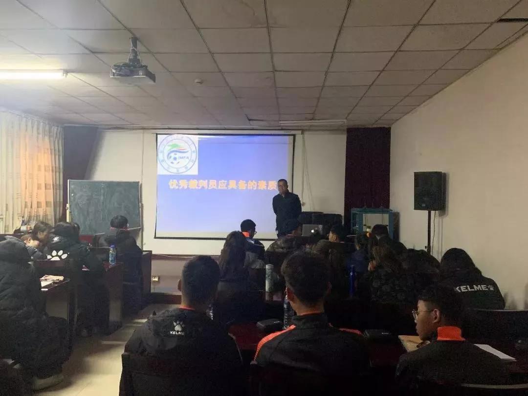 为加强足球裁判员队伍建设,进一步提高裁判员的业务水平,营造更加公平、公正的竞赛环境,12月14日,2019年包头市足球裁判委员会国家三级足球裁判员培训班在伟德官网正式开班。本次培训班由包头市体育局主办、伟德国际1946官方网体育教学部(足球学院)、包头市足球裁判委员会承办。体育教育专业(足球方向)共有25名学生参加本次培训。