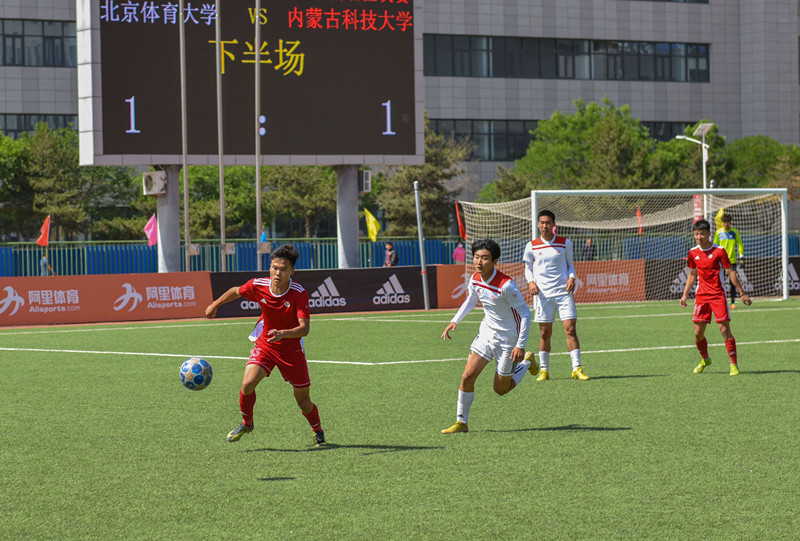 僵局在比赛进行到第74分钟时,被北京体育大学16号球员王鑫豪打破,他冲破防守,一脚猛射,球破网而入,北京体育大学率先得分。此时,内科大球员顶着压力,稳住节奏,寻求突破。终于,在北京体育大学进球4分钟后,内科大13号球员景致优突破对方层层防守,临门一脚,球直飞入网,扳平比分。比赛再次进入到白热化阶段,直到下半场比赛结束,双方始终不分胜负,1:1比分紧咬。