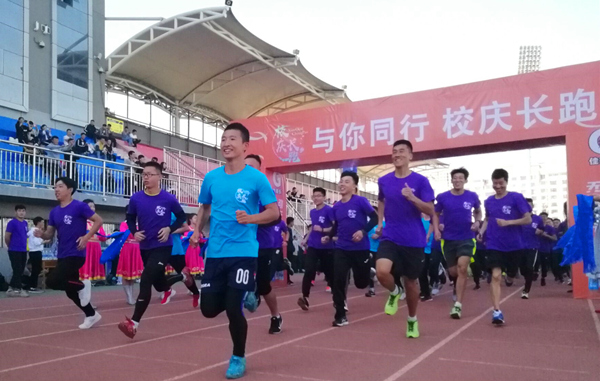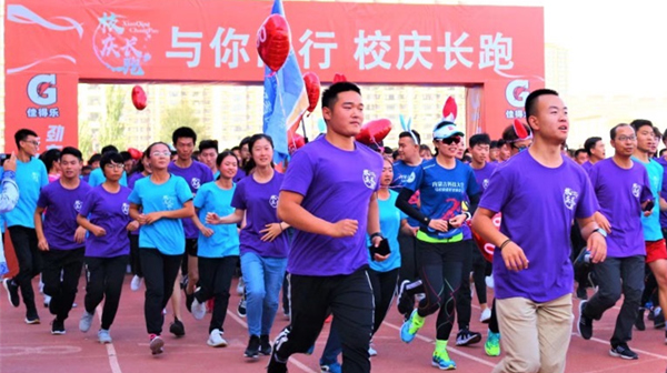 在校舞蹈队和能源与环境学院同学们欢快的舞狮及啦啦操表演中,校庆长跑活动正式拉开帷幕。当校党委副书记、校长安胜利发令枪响起,身着统一文化衫的参赛师生及校友们冲出起跑线。运动员们用高昂的热情与矫健的步伐向母校传递着深深的祝福。