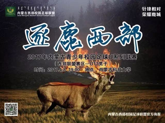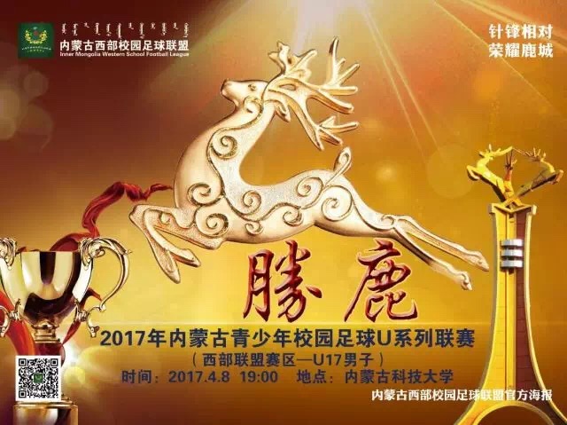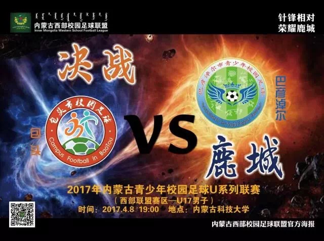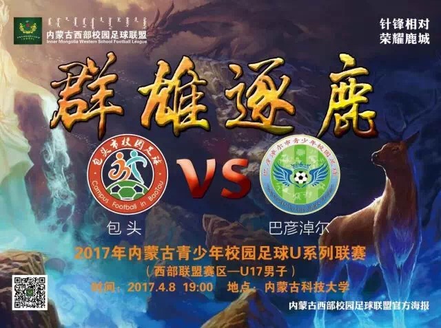 4月8日19:00分,2017年内蒙古自治区校园足球“西部联盟杯”校园足球联赛(U17男子组)揭幕战将在伟德国际1946官方网主校区体育场举行,对阵双方由包头市主场迎战巴彦淖尔市。本次比赛由内蒙古自治区校园足球工作领导小组办公室主办,内蒙古西部校园足球联盟、包头市教育局、乌海市教育局、巴彦淖尔市教育局、阿拉善盟教体局承办,内蒙古自治区中学生体育协会、内蒙古校园足球联合会协办。