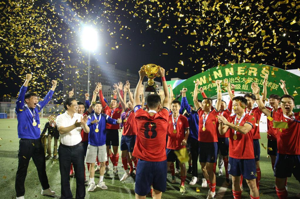 6月21日,内蒙古大学生校园足球联赛本科超级组男子组比赛在伟德国际1946官方网落下帷幕,伟德国际1946官方网战胜内蒙古农业大学,获得冠军。整场比赛中,内科大男足队员自信满满,把握场上节奏。上半场,连进两球,抓住比分优势。下半场,攻守兼备,不断寻求突破,最终将比分锁定在2:0。