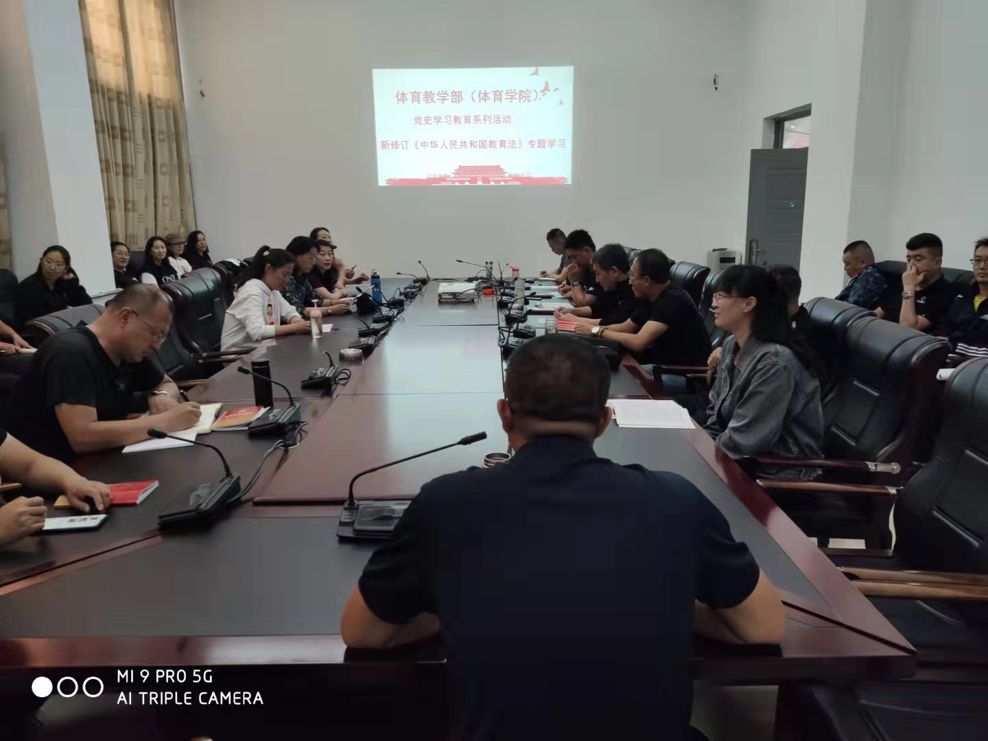 9月16日,伟德国际1946官方网党总支组织学院全体教职工在体育馆二楼会议室专题学习新修订的《中华人民共和国教育法》。