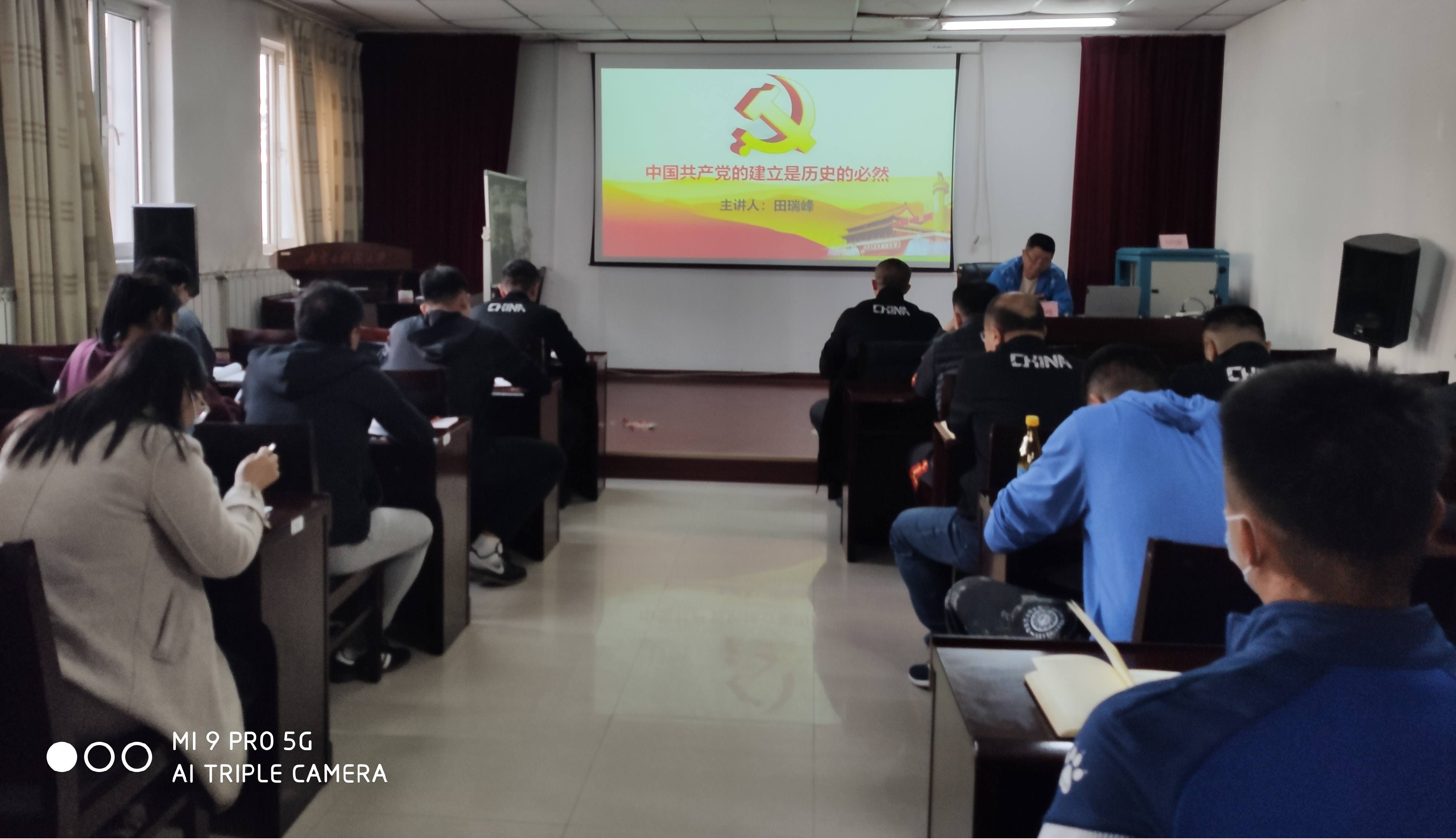 为深入贯彻落实《内蒙古自治区党委宣传部关于庆祝中华人民共和国成立72周年广泛组织开展“我和我的祖国”群众性主题宣传教育活动的通知》精神,深入推进党史学习教育,进一步激励伟德国际1946官方网全体党员学党史、感党恩,10月28日学院组织开展了共和国故事专题分享会,特邀请伟德国际1946官方网田瑞峰教授为学院的全体党员讲授了《中国共产党的建立是历史的必然》为主题的党课。