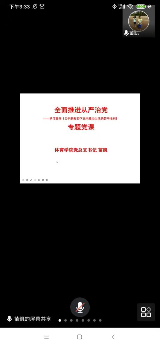 接着,党总支书记苗凯领学《学习习近平总书记严肃党内政治生活重要思想》、《内蒙古:以宋亮严重违纪违法案为镜鉴警醒反思对照检查》,并以推进全面从严治党——学习贯彻《关于新形势下党内政治生活的若干准则》为题给全体教职工讲授了一堂生动的党课,围绕党内政治生活的重大作用和存在的突出问题,坚定理想信念等12个方面分别提出明确要求和作出具体规定,以及加强组织领导和督促检查确保各项任务落到实处展开详细讲解。