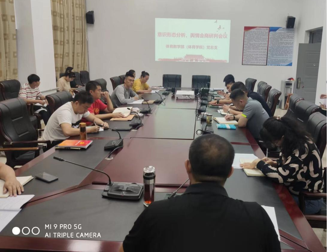 6月21日,伟德国际1946官方网党总支在体育馆二楼会议室召开意识形态分析、舆情会商研判会议,贯彻落实学校关于意识形态工作要求,研究部署下一步工作。党总支书记苗凯主持会议,学院科级以上领导干部及任课教师代表参会。