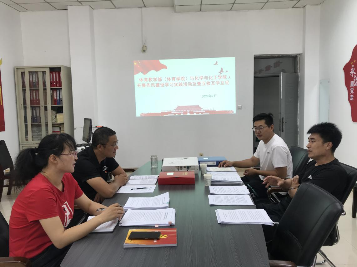 7月21日伟德国际1946官方网党总支与化学与化工学院党委开展了强化作风建设学习实践活动“互查互检互学互促”活动。结合学校强化作风建设学习实践活动的进展情况,围绕结对单位各自工作的开展情况,通过现场听取工作汇报、查看资料、谈话交流等方式,结对单位相互学习并借鉴了开展工作的先进经验和做法,相互取长补短,发现并查找出各自存在的问题和不足,以便日后及时改进和提高。
