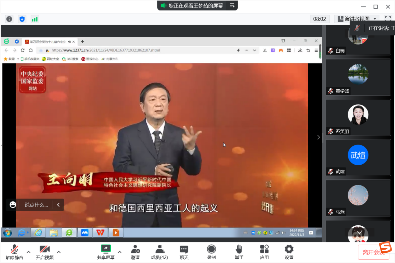 全体教职工通过公开课视频学习了“两个确立”的决定性意义。公开课主讲人为中国人民大学习近平新时代中国特色社会主义思想研究院副院长王向明,课程观点鲜明,逻辑清晰,帮助与会人员进一步加深了对“两个确立”决定性意义的理解,起到了很好的学习效果。