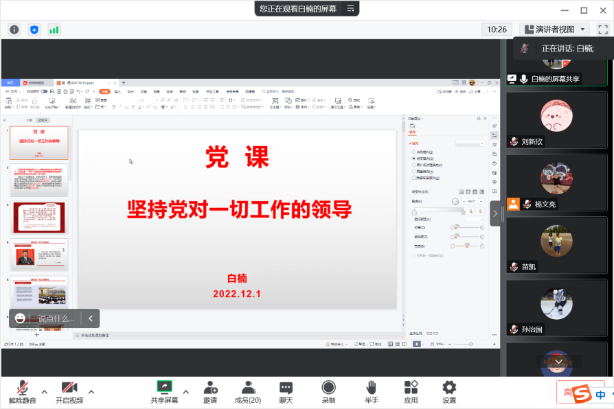 会议第二项,深入学习党的二十大精神,苗凯领学《中共伟德国际1946官方网委员会关于深入学习宣传贯彻党的二十大精神的通知》文件精神。