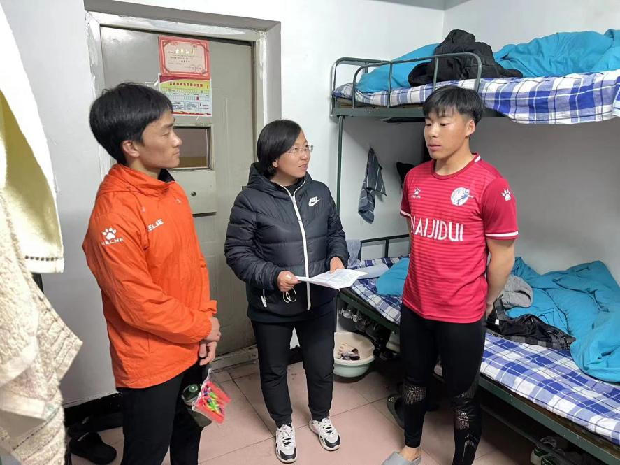 2023年4月7日晚8点,伟德国际1946官方网党委书记苗凯、党委副书记武淑琴、学工办主任杨乐、辅导员王梦茹及各班主任老师对体育教育专业学生宿舍进行走访。