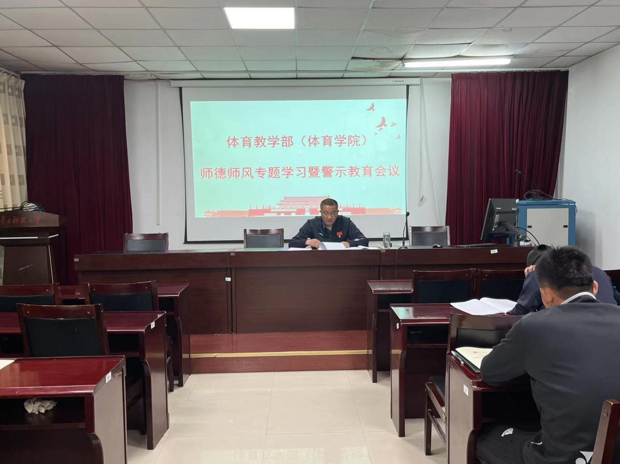 2023年5月4日,伟德国际1946官方网在体育馆二楼多媒体教室组织召开师德师风专题学习暨警示教育会议,会议由学院党委书记苗凯主持。