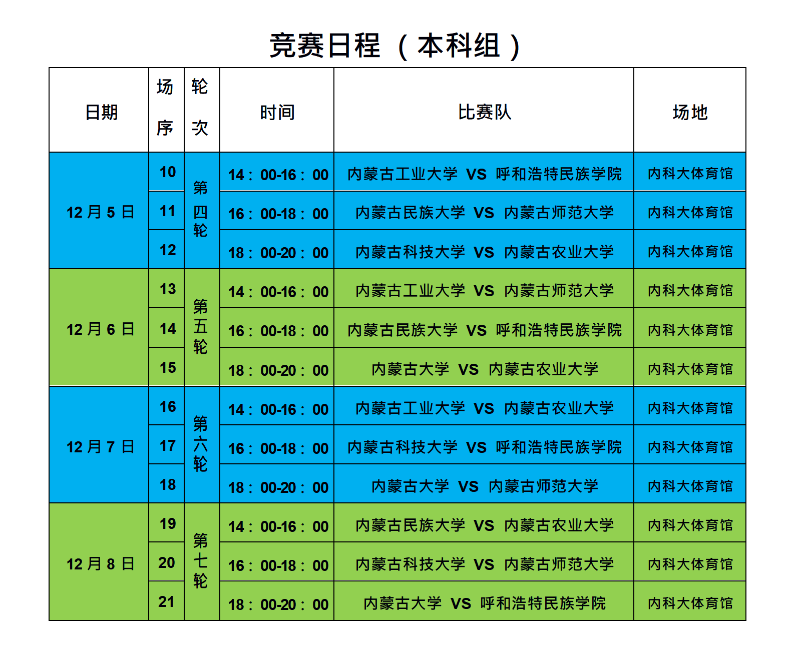 2023年内蒙古自治区校园足球大学生室内五人制联赛暨啦啦操总决赛本科组联赛竞赛日程