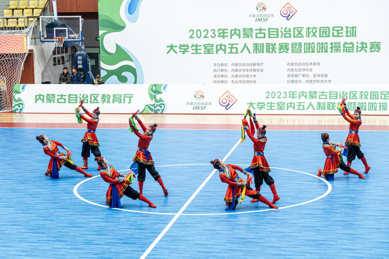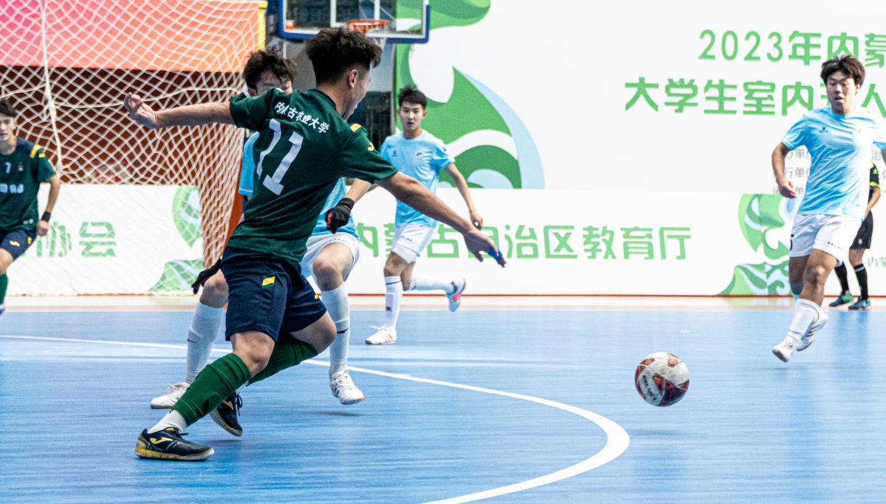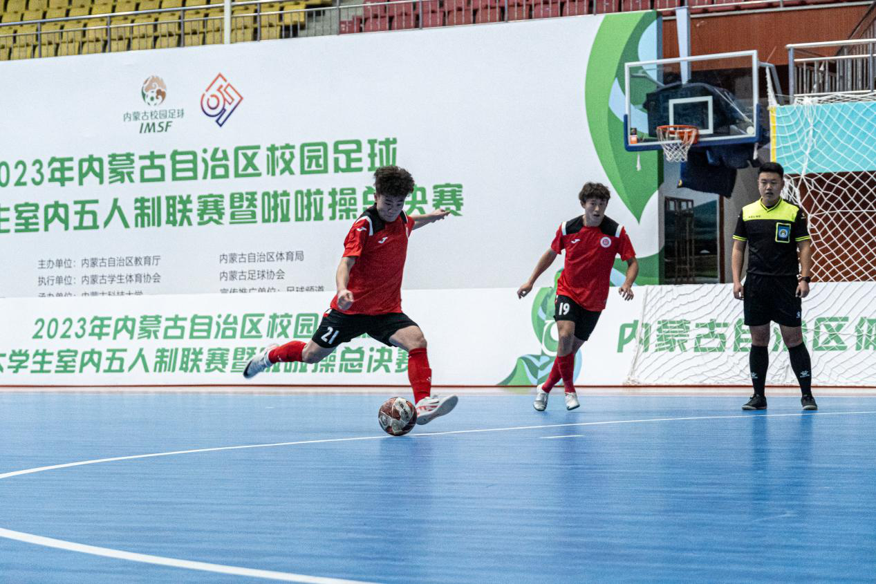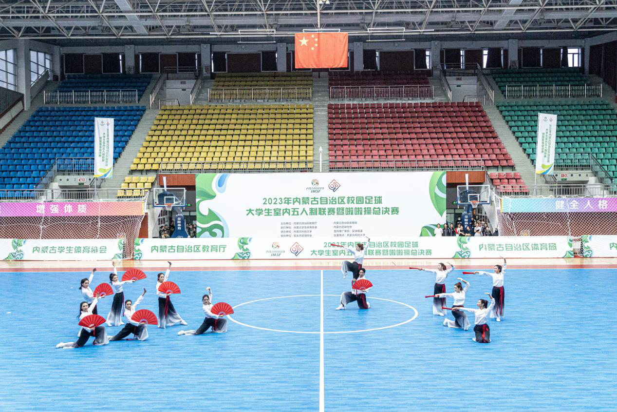 2023年12月7日,2023年内蒙古自治区校园足球大学生室内五人制联赛暨啦啦操总决赛本科组第六轮竞赛在伟德国际1946官方网体育馆开赛。