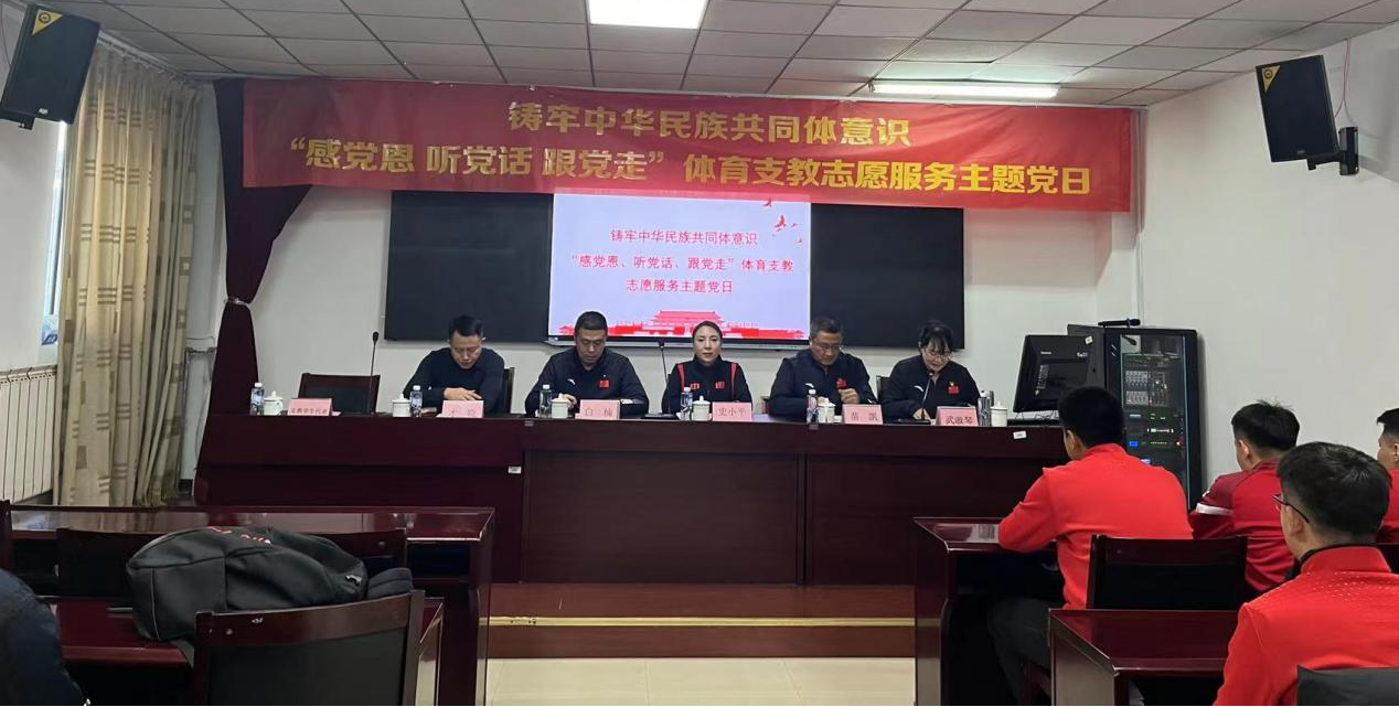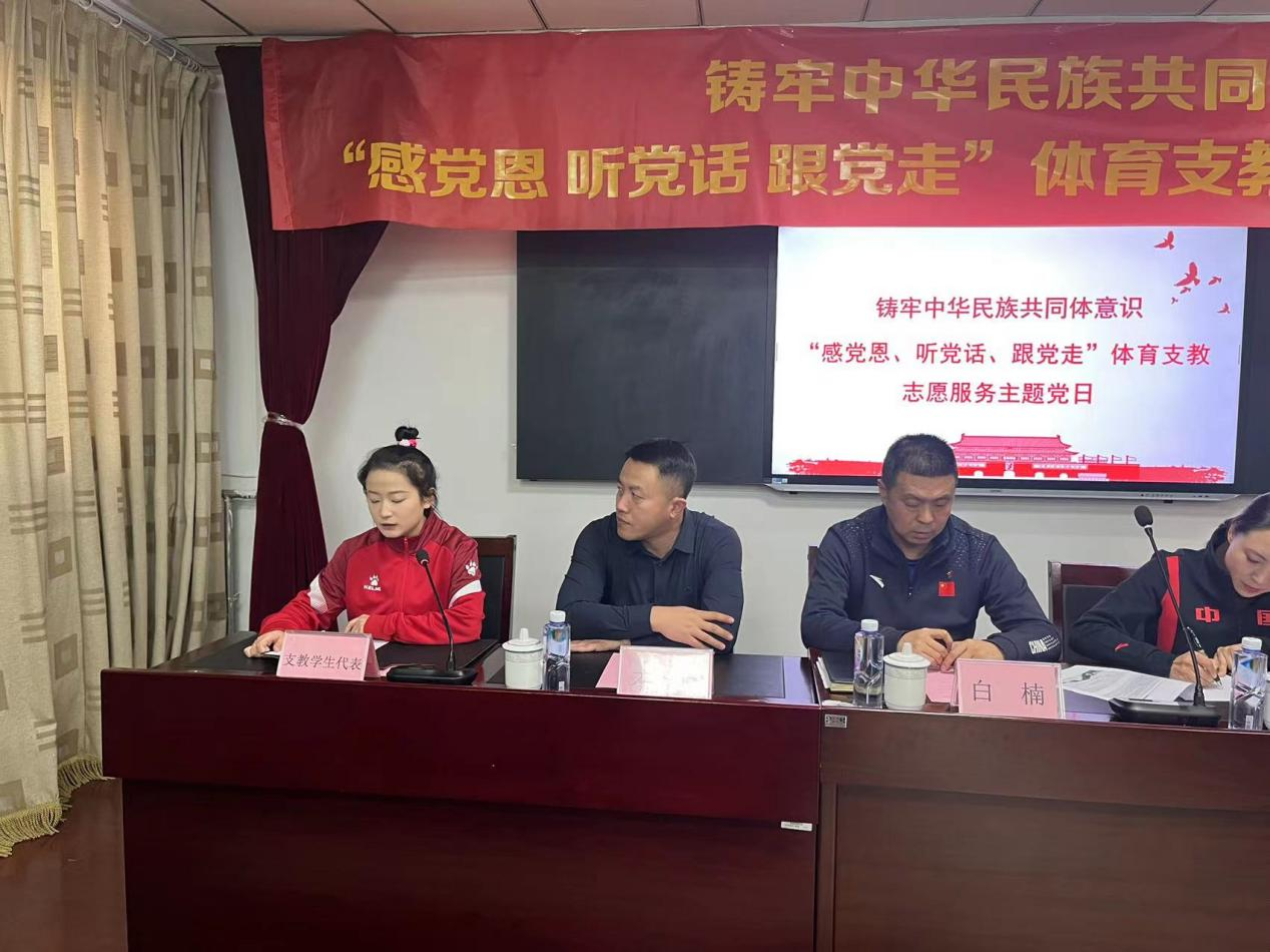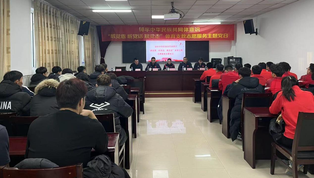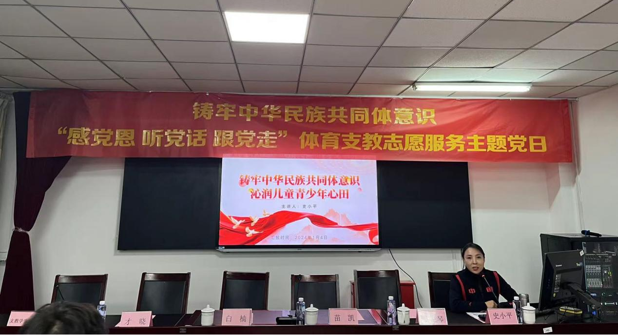 2024年1月4日,伟德国际1946官方网在伟德国际1946官方网体育馆组织开展铸牢中华民族共同体意识“感党恩、 听党话、跟党走”体育支教志愿服务主题党日活动,内蒙古体育局青少年体育处处长史小平、主任科员才晓出席活动,伟德国际1946官方网党委书记苗凯、主任(院长)白楠、党委副书记武淑琴、学院全体学生参加活动,活动由党委副书记武淑琴主持。