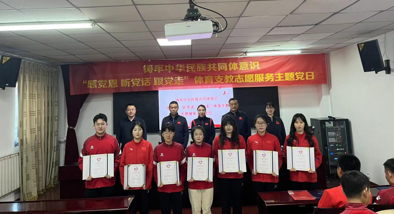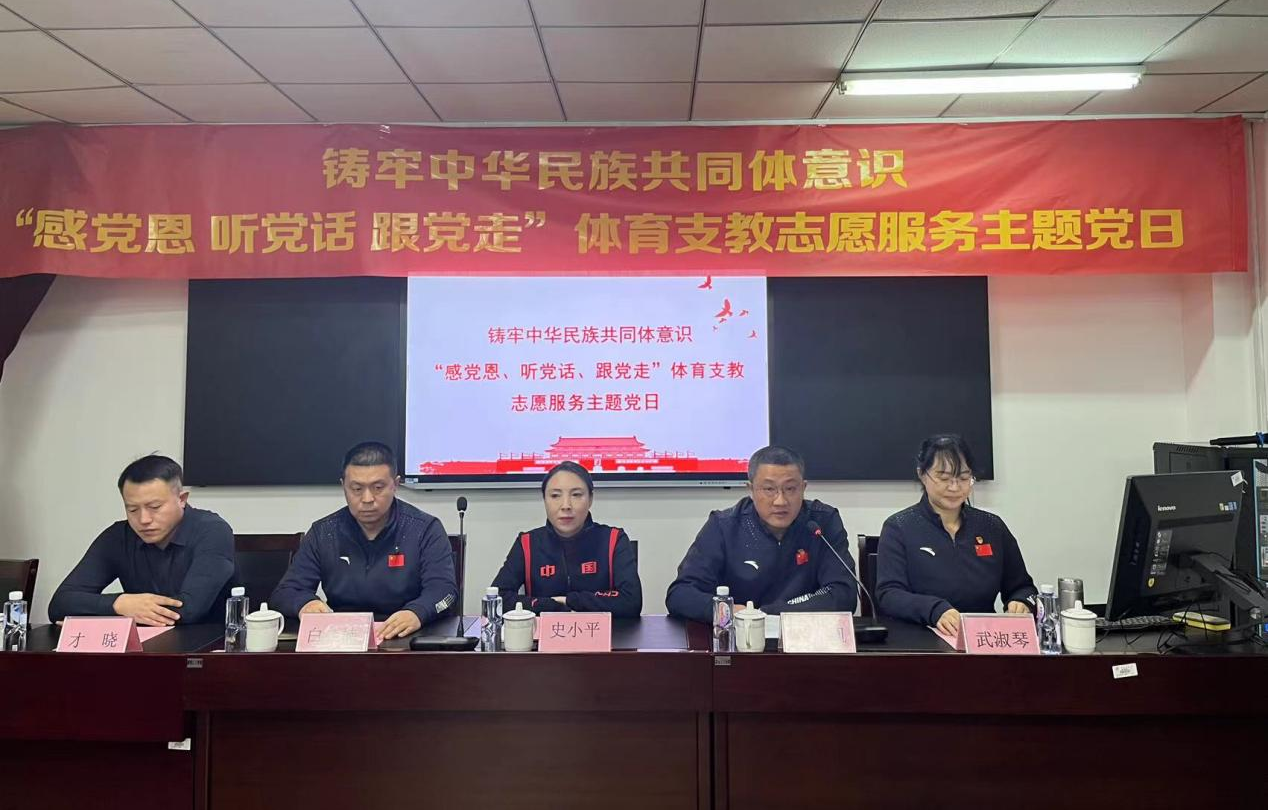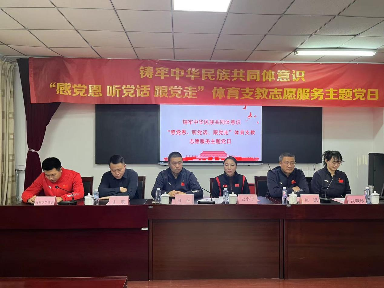 2024年1月4日,伟德国际1946官方网在伟德国际1946官方网体育馆组织开展铸牢中华民族共同体意识“感党恩、 听党话、跟党走”体育支教志愿服务主题党日活动,内蒙古体育局青少年体育处处长史小平、主任科员才晓出席活动,伟德国际1946官方网党委书记苗凯、主任(院长)白楠、党委副书记武淑琴、学院全体学生参加活动,活动由党委副书记武淑琴主持。