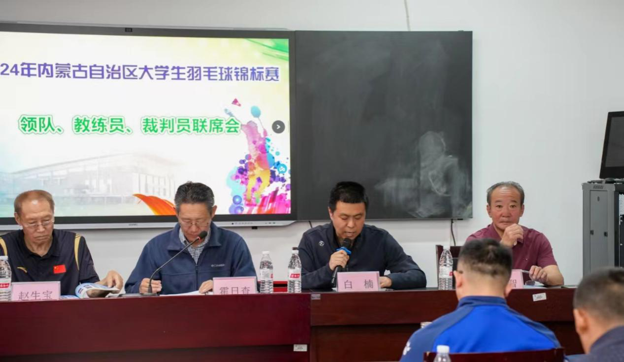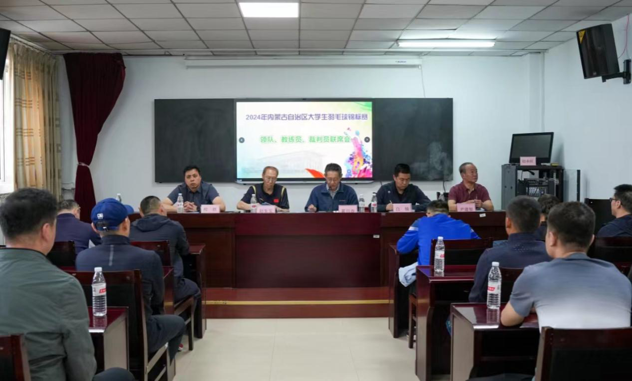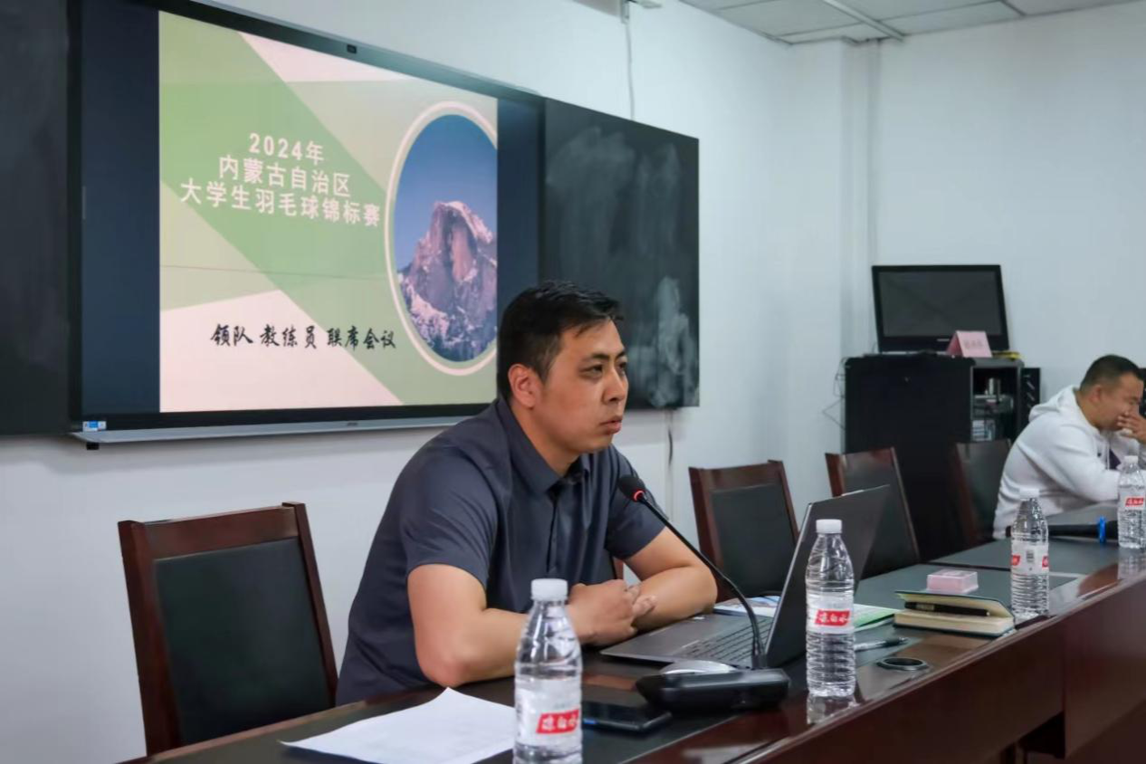 2024年4月11日,2024年内蒙古自治区大学生羽毛球锦标赛赛前联席会在伟德国际1946官方网体育馆召开。内蒙古学生体育协会会长霍日查,内蒙古学生体育协会副会长赵生宝,伟德国际1946官方网主任(院长)白楠,技术代表尹建智,裁判长程轶,各参赛队伍领队、教练参会,会议由赵生宝主持。