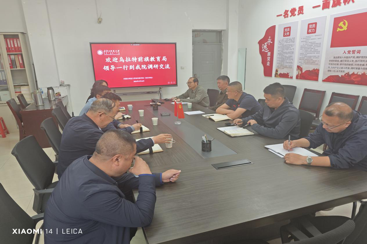 4月16日下午,乌拉特前旗教育局局长杨国栋、副局长胡群及局机关体卫艺股工作人员,来伟德官网伟德国际1946官方网交流、调研体育教育合作共建项目,助力推动乌拉特前旗体育教育高质量发展。我院党委书记苗凯、院长白楠、党委副书记唐国桥、副院长张新民、田瑞峰教授参加此次交流活动。在座谈会上,双方就学校体育工作长期合作、乌拉特前旗学校足球教练员长期培训、伟德国际1946官方网学生实训基地建设、足球直通车等项目进行深入的交流探讨,达成了预期效果。院长白楠明确表示,愿意支持乌拉特前旗提出的帮扶意向和需求,针对性的开展体育师资培训、足球教练员培训和足球训练工作、足球特长生培养规划等对口帮扶项目。