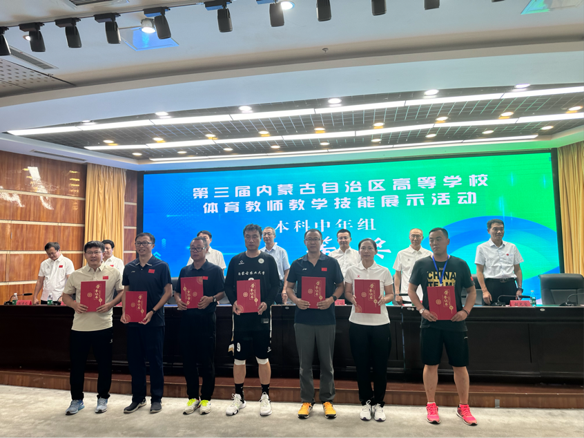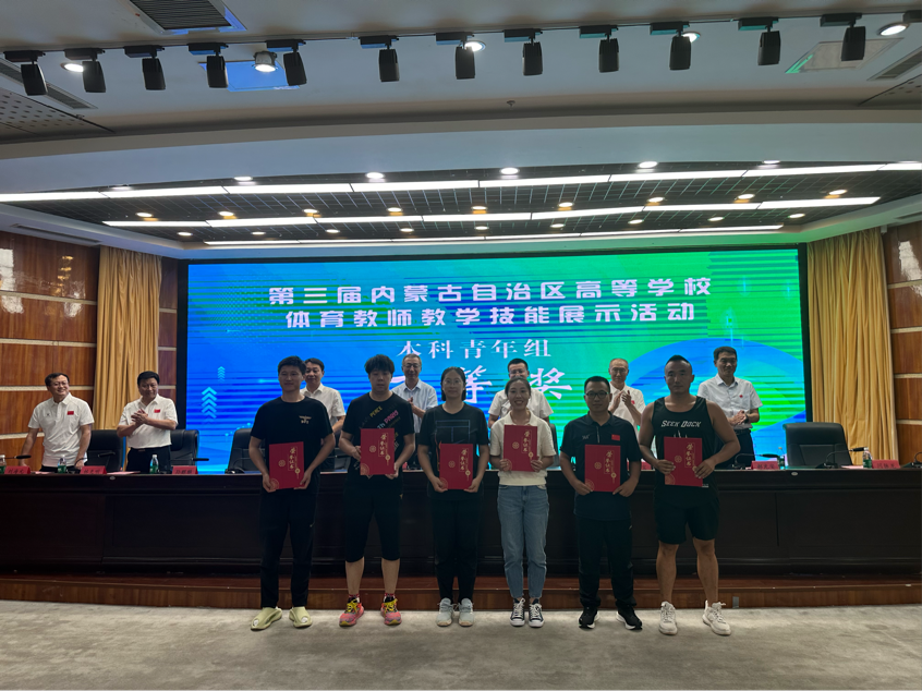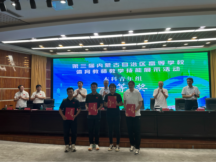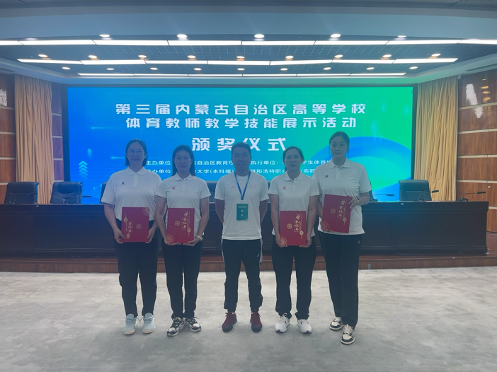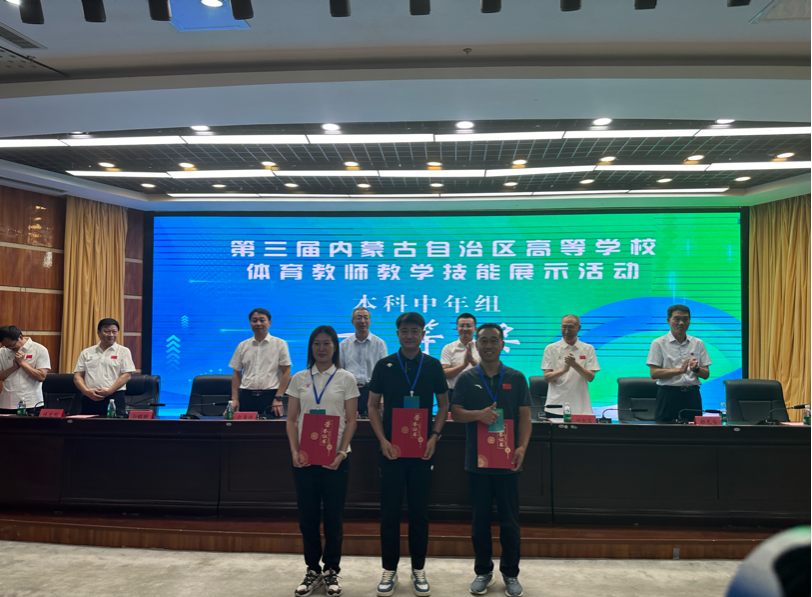 2024年8月28至30日,第三届内蒙古自治区高等学校体育教师教学技能展示活动在内蒙古大学和呼和浩特职业学院举行。伟德官网伟德国际1946官方网教师宋萌获得中年组一等奖、孙耀兰获得青年组一等奖、任苏佳获得青年组二等奖、陈中华获得中年组三等奖。