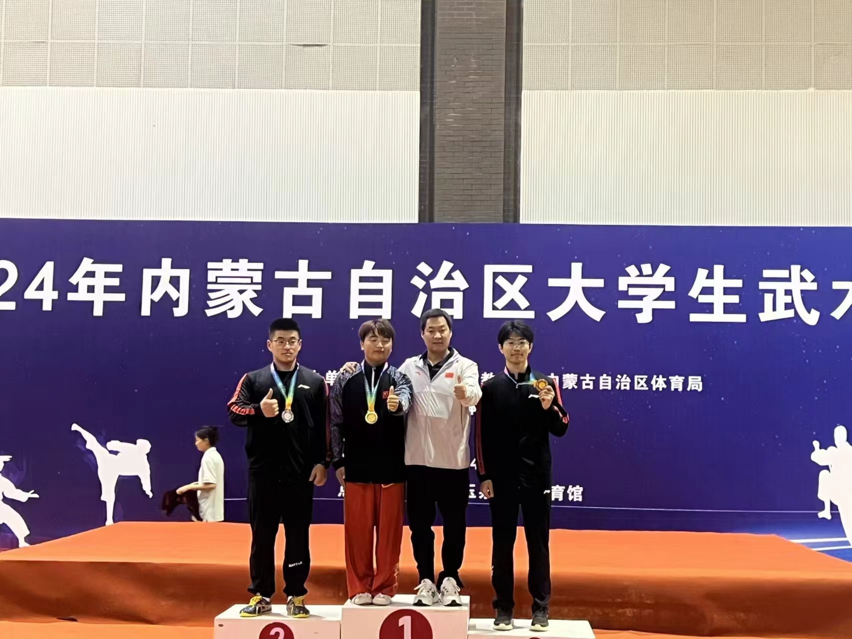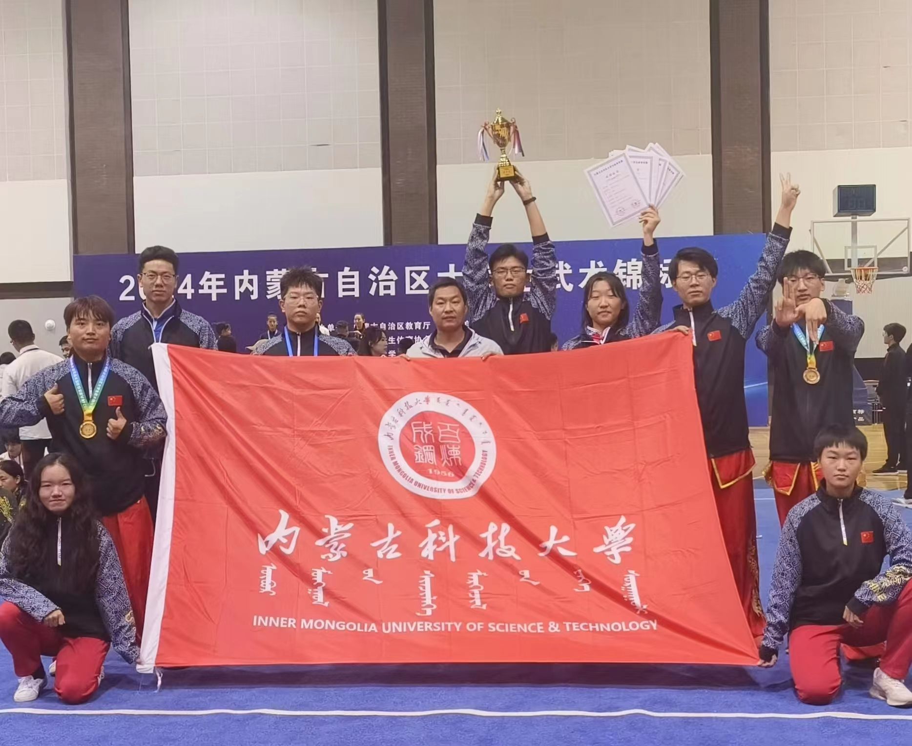 金秋九月,硕果累累。在 2024年9月24日至25日,由内蒙古自治区教育厅、内蒙古自治区体育局主办,内蒙古学生体育协会执行,内蒙古大学承办的 2024 年内蒙古自治区大学生武术锦标赛上,伟德国际1946官方网逯中伟老师带领武术队10名队员参赛,荣获单项冠军2项、季军1项,其余奖项若干,集体项目第二名的好成绩(具体获奖名单附后)。