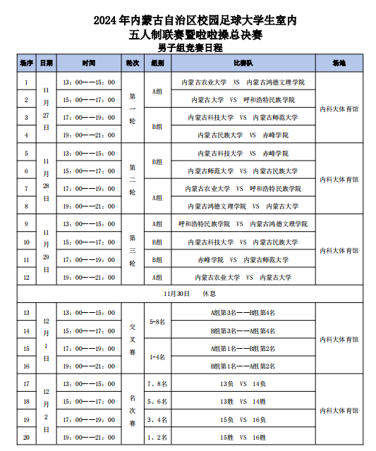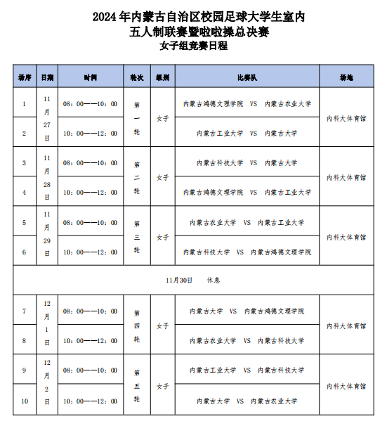本届比赛由内蒙古自治区教育厅、内蒙古自治区体育局主办,内蒙古学生体育协会执行,伟德国际1946官方网承办,包头市足球协会协办。来自内蒙古自治区8支本科组男子足球代表队、5支本科组女子足球代表队、7支本科组啦啦操代表队及5支高职高专组啦啦操代表队共415名运动员参赛。
