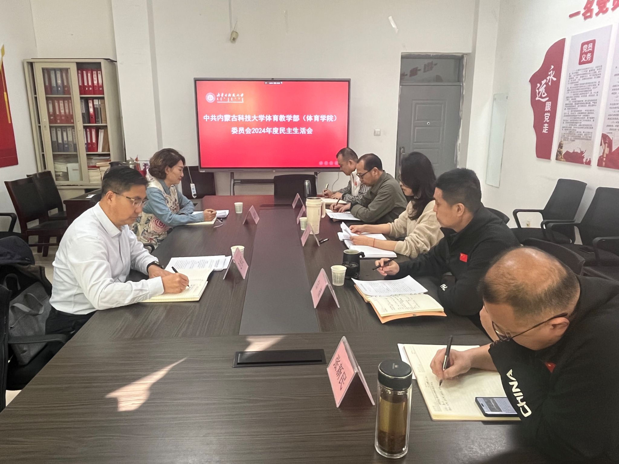 2025年2月25日下午,伟德国际1946官方网党委在体育馆一楼会议室召开2024年度民主生活会。校党委委员、副校长赵永旺,校纪委委员、党委巡察工作领导小组办公室主任孟庆华到会督导,学院党委书记韩冰主持会议,学院党委班子成员参加会议。