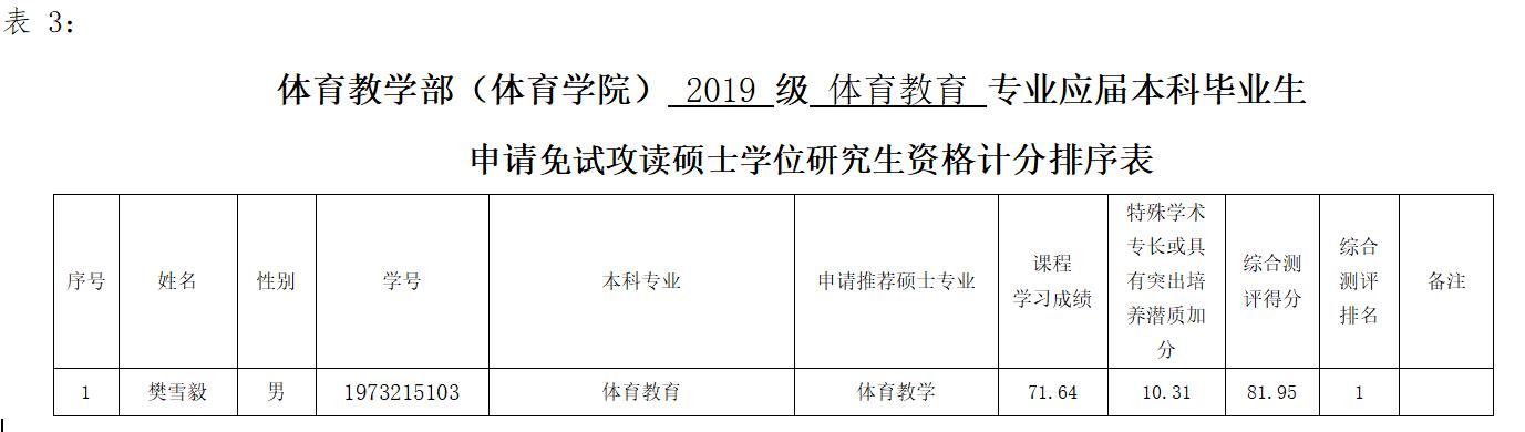 经伟德国际1946官方网推免生遴选工作小组评议,拟推荐名单如下,现予以公示,如有异议,请向伟德国际1946官方网体育教育系主任王丰反映,电话:0472-5288702,办公地址:体育馆117。