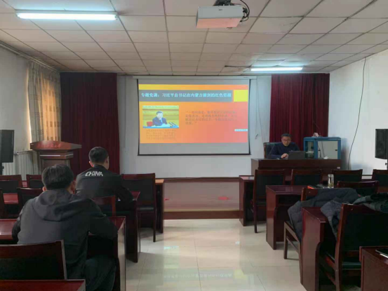 4月15日下午,伟德国际1946官方网副主任(副院长)苗凯为全体教职工做了习近平总书记在内蒙古提到的红色资源专题党课,党课在二楼多媒体教室进行。
