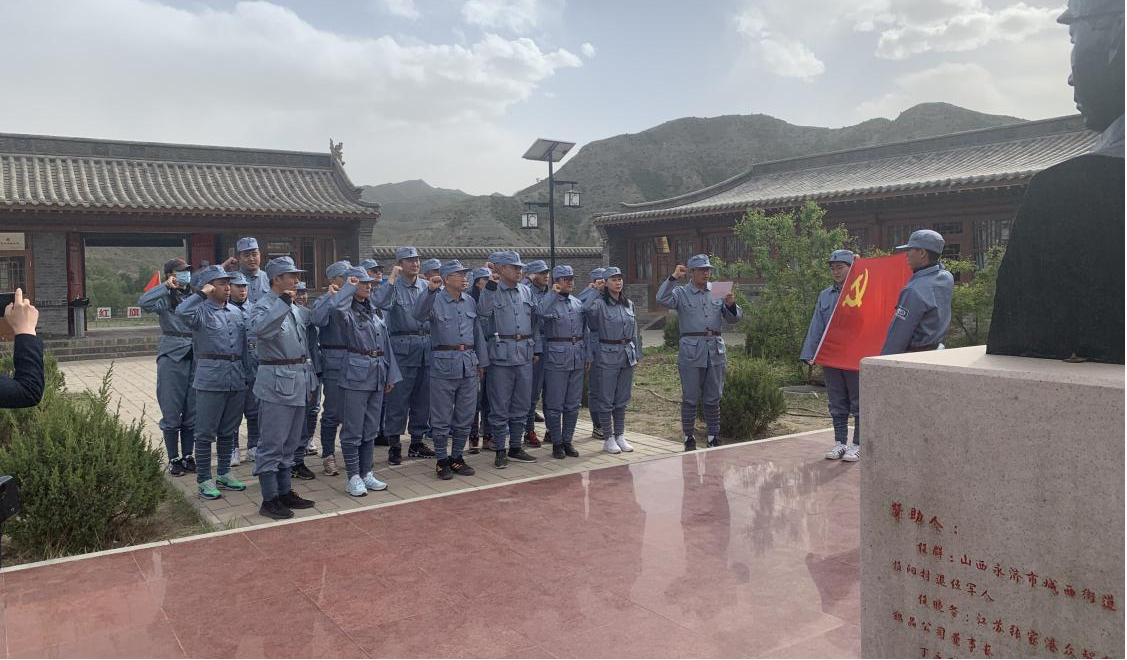 随后,全体党员教师在巴总尧村八路军大青山支队司令部纪念馆开展党史学习。在李井泉塑像前,鲜红庄严的党旗下,党总支书记苗凯同志带领全体教师重温入党誓词。宣誓后,参观了革命遗址、展馆,观看了八路军大青山支队抗日历史影片。