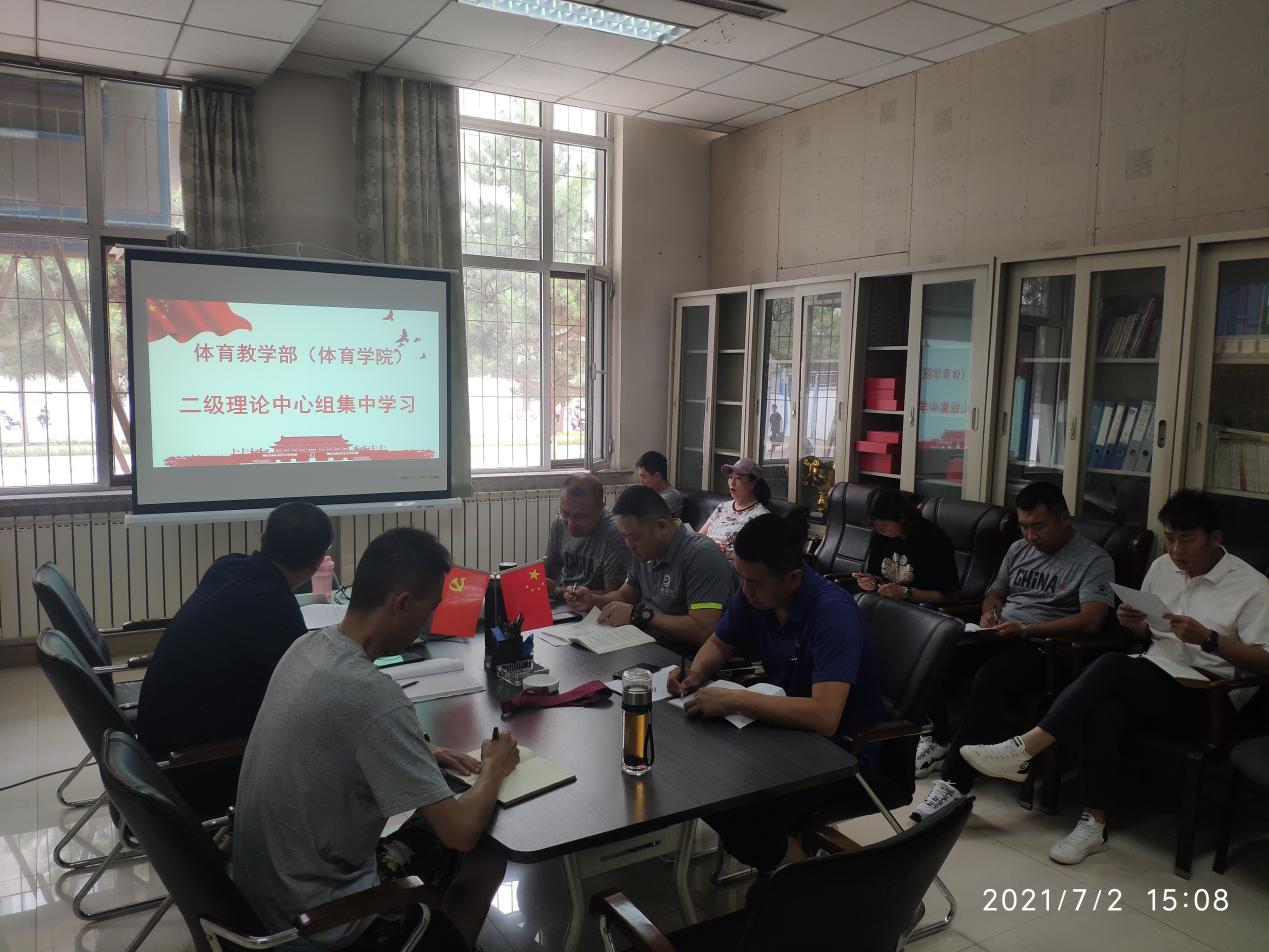 7月2日,伟德国际1946官方网党总支理论中心组在体育馆113会议室开展集中学习。会上,认真学习了习近平总书记在庆祝中国共产党成立100周年大会上的重要讲话精神,并结合工作实际,进行了研讨发言。