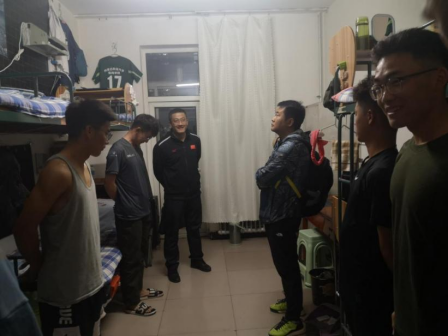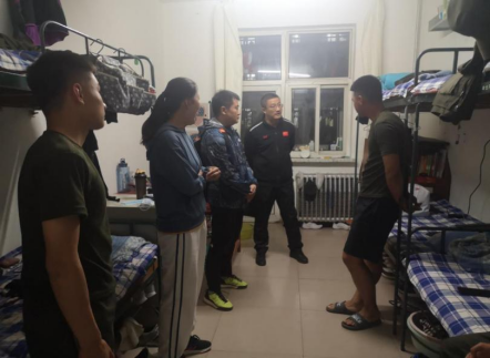 2021年5月11日,伟德国际1946官方网党总支书记苗凯、体育教育系主任王丰、学工办主任赵鑫、团总支书记闫智惠、辅导员王梦茹对体育教育专业学生晚归、夜不归宿及校外租住情况进行检查。